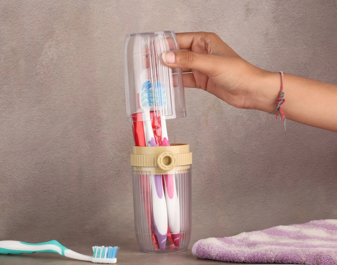Transparent round toothbrush holder
